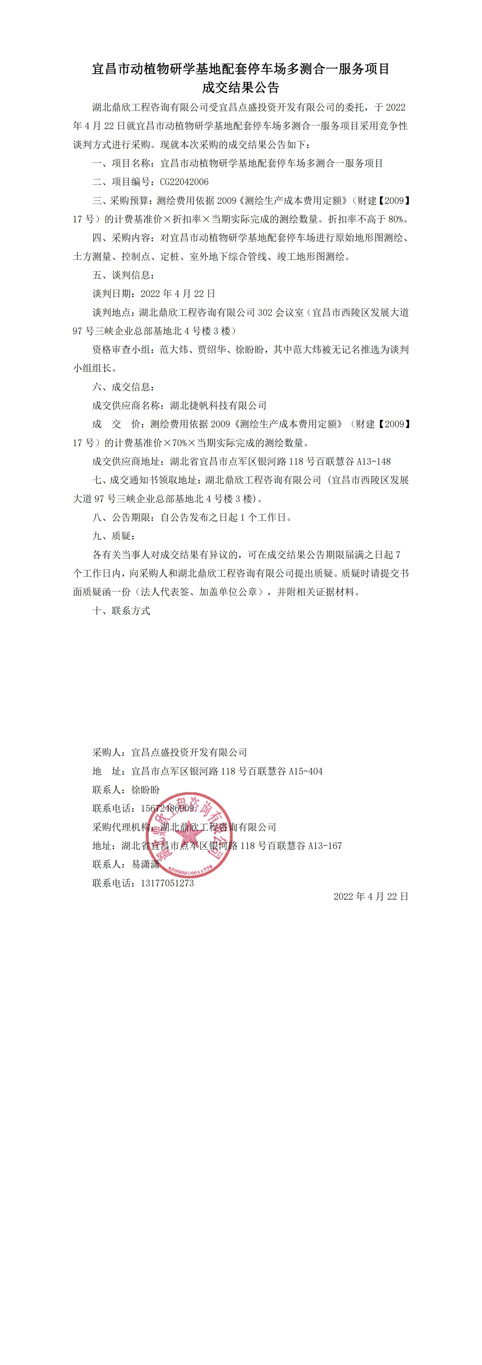 宜昌市動植物研學基地配套停車場多測合一服務(wù)項目成交結(jié)果公告