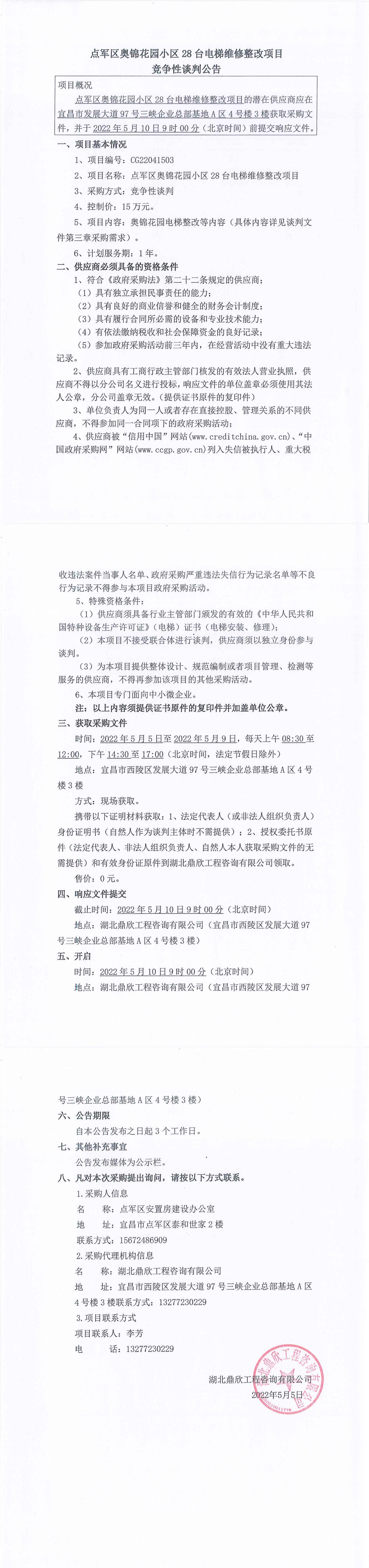 點(diǎn)軍區(qū)奧錦花園小區(qū)28臺(tái)電梯維修整改項(xiàng)目談判公告