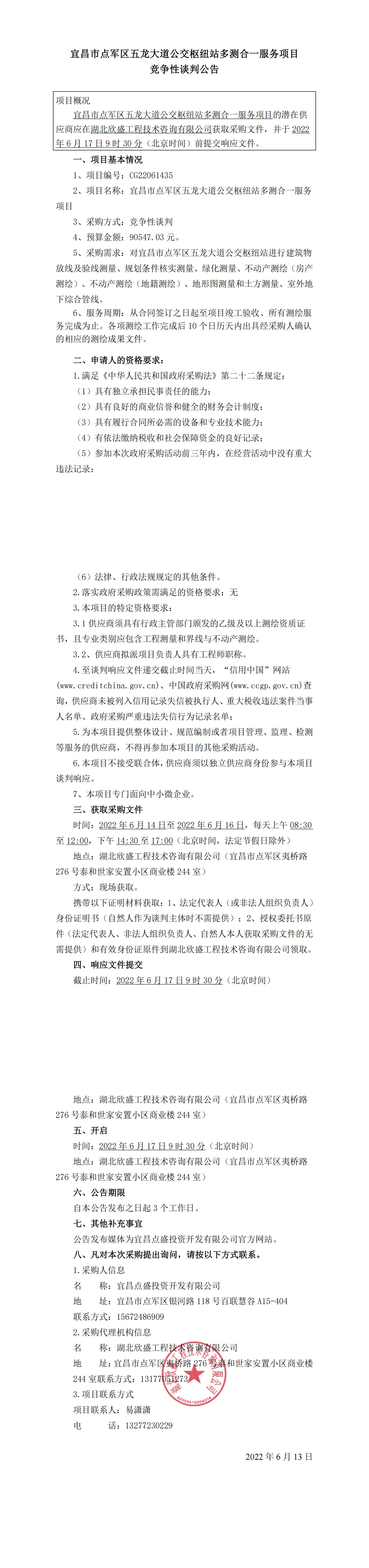 宜昌市點軍區(qū)五龍大道公交樞紐站多測合一服務項目競爭性談判公告