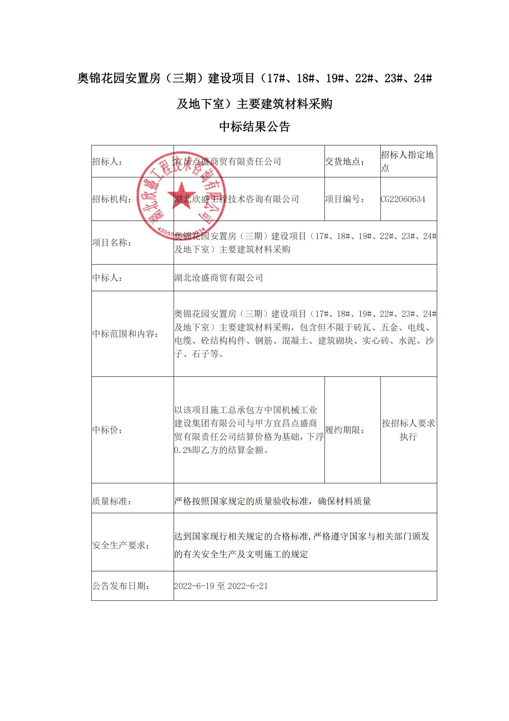 奧錦花園安置房(三期)建設(shè)項(xiàng)目(17#、18#、19#、22#、23#、24#及地下室)主要建筑材料采購(gòu)中標(biāo)結(jié)果公告