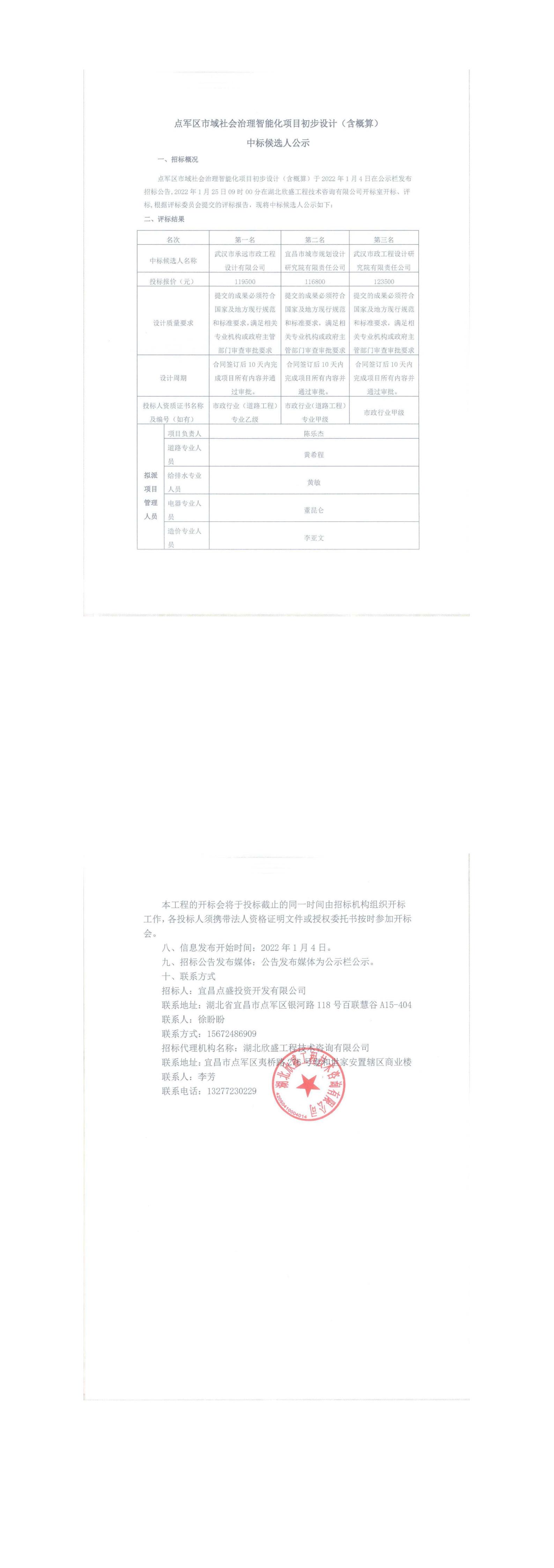 點(diǎn)軍區(qū)市域社會(huì)治理智能化項(xiàng)目初步設(shè)計(jì)(含概算)中標(biāo)候選人公示