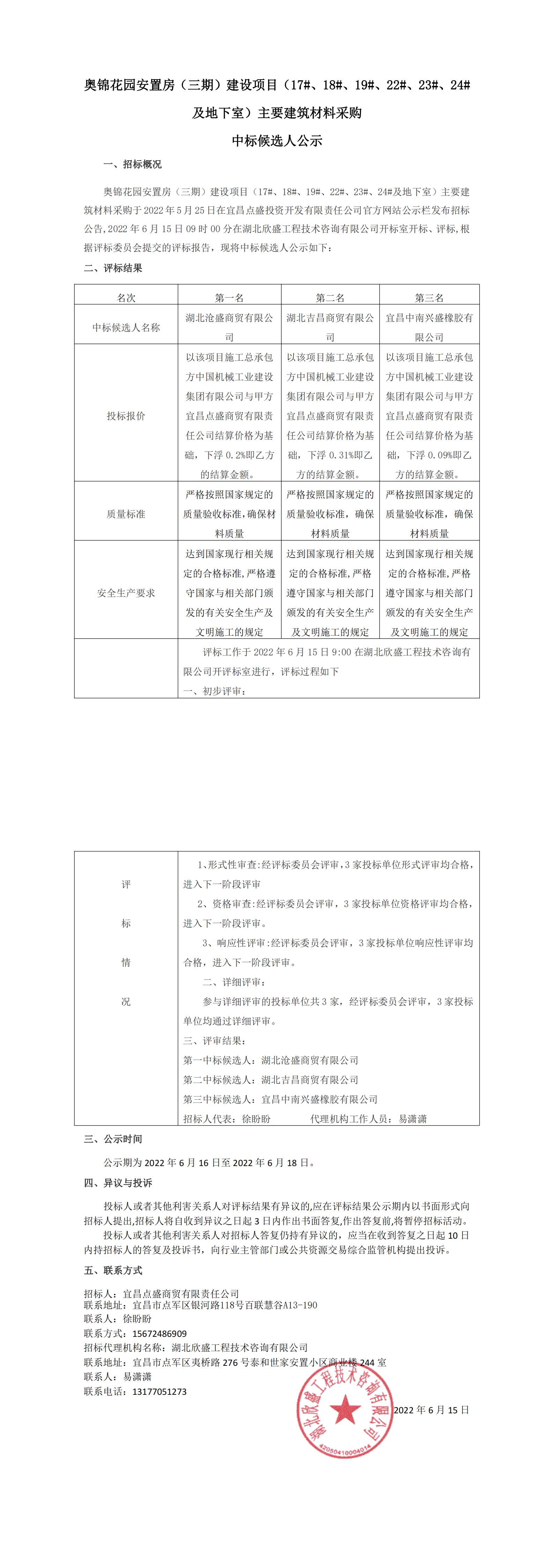 奧錦花園安置房(三期)建設(shè)項目(17#、18#、19#、22#、23#、24#及地下室)主要建筑材料采購中標(biāo)候選人公示