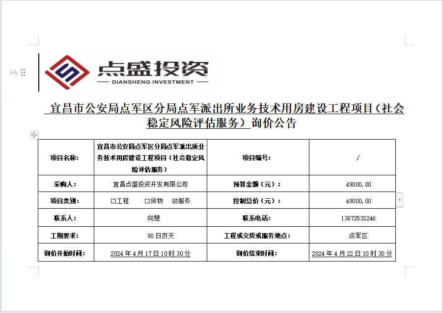 宜昌市公安局點軍區(qū)分局點軍派出所業(yè)務技術(shù)用房建設工程項目(社會穩(wěn)定風險評估服務)詢價公告