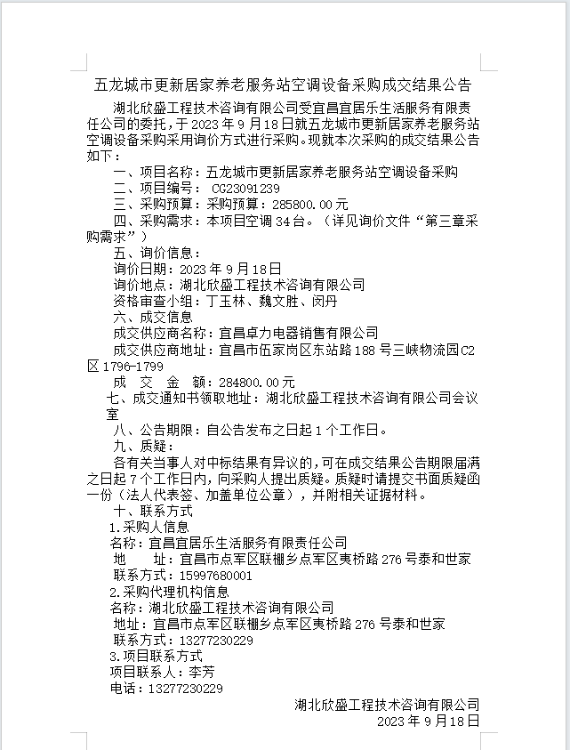 五龍城市更新居家養(yǎng)老服務(wù)站空調(diào)設(shè)備采購(gòu)成交結(jié)果公告