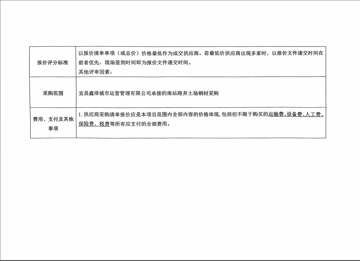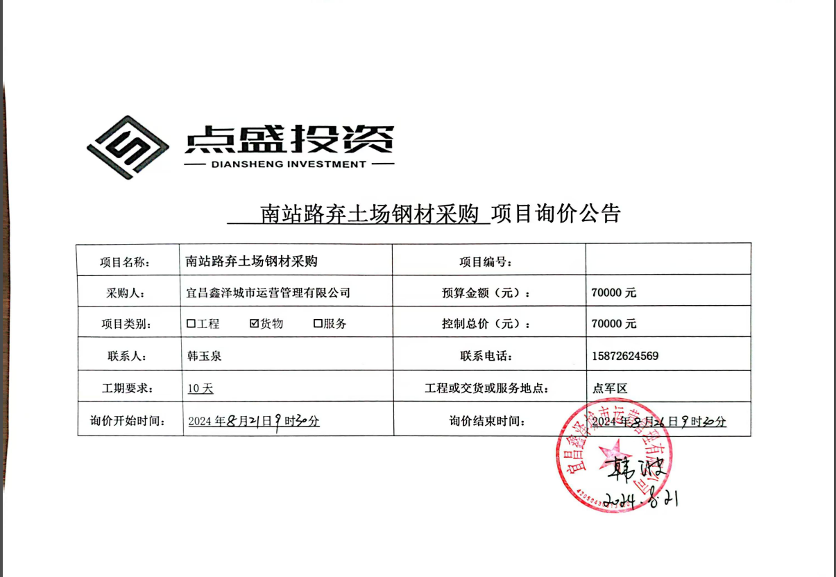 南站路棄土場鋼材采購項目詢價公告