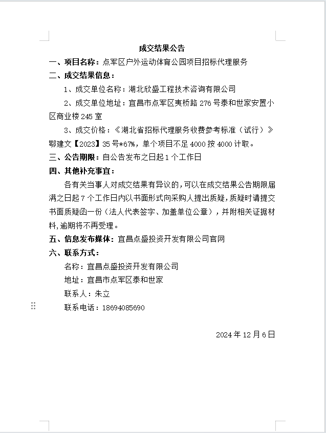 點(diǎn)軍區(qū)戶外運(yùn)動體育公園項(xiàng)目招標(biāo)代理服務(wù)成交公告