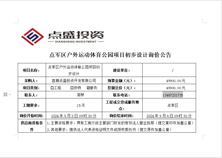 點(diǎn)軍區(qū)戶外運(yùn)動體育公園項(xiàng)目初步設(shè)計(jì)詢價(jià)公告